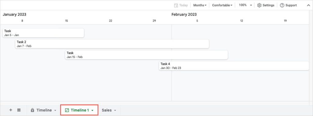 Η παραμονή σε εργασία και ενημερωμένη είναι ευκολότερη με την προβολή χρονοδιαγράμματος Google Sheets. Μπορείτε να δείτε τα ορόσημα και τα καθήκοντά σας στο έργο σας και στη συνέχεια να μοιραστείτε το πρόγραμμα του έργου με μέλη της ομάδας ή ενδιαφερόμενα μέρη.