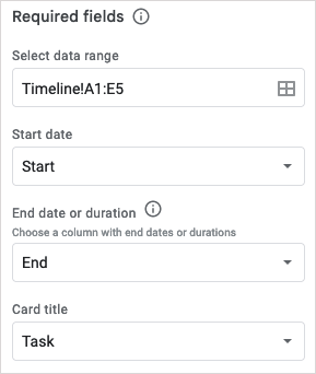 Επιλέξτε τις στήλες για τοΗμερομηνία έναρξης,Ημερομηνία λήξης ή διάρκεια,Τίτλος κάρτας.