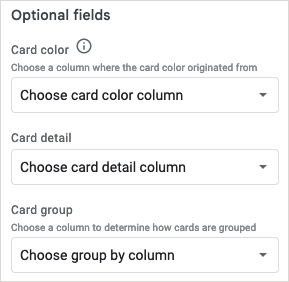 - Χρώμα καρτών: Εάν θέλετε να χρωματίσετε τις κάρτες σας, επιλέξτε μια στήλη για να βασίσετε το χρώμα.