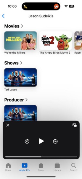 6.Εκτός από τη μετάβαση από τα ονόματα των καλλιτεχνών, μπορείτε επίσηςΠατήστε σε οποιοδήποτε από αυτά για να ανοίξετε τη σελίδα χαρτοφυλακίου τουςμε τη λειτουργία Player σε λειτουργία εικόνας σε εικόνα (PIP). Στη σελίδα χαρτοφυλακίου, μπορείτεΔείτε όλες τις ταινίες και τις τηλεοπτικές εκπομπές που διατίθενται στο Apple TV+ στις οποίες χυθεί ο επιλεγμένος ηθοποιός ή ηθοποιός.