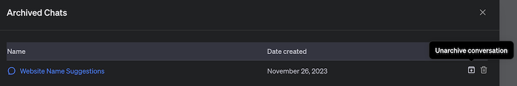 Εάν θέλετε απλώς να κρύψετε τις συνομιλίες σας, μπορείτε να τις αρχειοθετήσετε χρησιμοποιώντας ένα άλλο ενσωματωμένο χαρακτηριστικό στο ChatGPT.