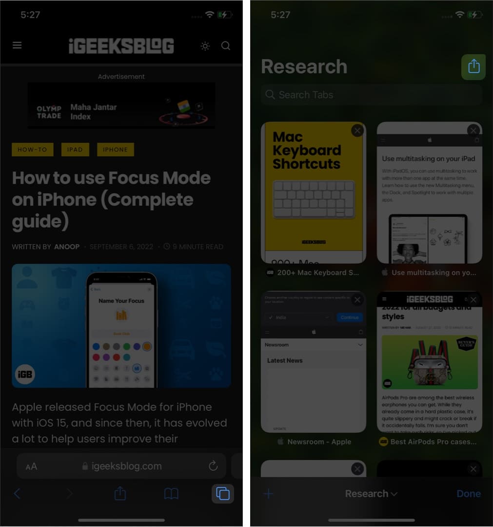 Κανονίστε τις καρτέλες Safari σε μια ομάδα καρτέλας