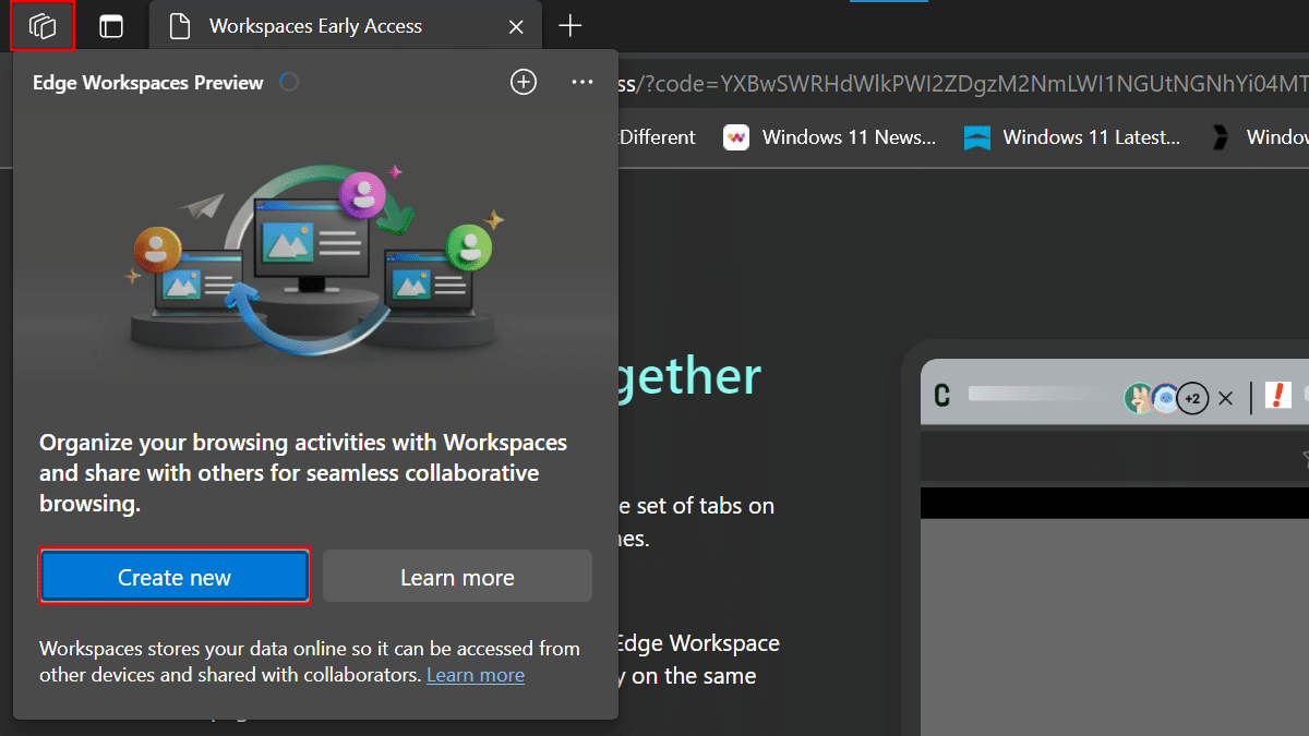 Στα Windows 11, η Microsoft Edge διαθέτει μια νέα λειτουργία "Edge Workspaces" που επιτρέπει στους χρήστες να μοιράζονται μια ομάδα καρτελών με άλλους ανθρώπους γρήγορα και με ασφάλεια. Το χαρακτηριστικό ουσιαστικά αντικατοπτρίζει τις ανοιχτές καρτέλες στη συνεδρία χωρίς κανέναν που έχει πρόσβαση στο χώρο εργασίας.