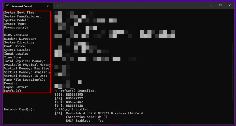Έτσι, περάστε από τη σελίδα πληροφοριών του συστήματος μέσα στο παράθυρο εντολών εντολών για να πάρετε μια ιδέα για το συνολικό ιστορικό δραστηριότητας του υπολογιστή σας Windows 11 ή του φορητού υπολογιστή σας.
