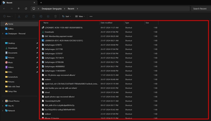 Τώρα, εάν θέλετε μια μεγαλύτερη λίστα με τα πρόσφατα αρχεία σας, μπορείτε να ανοίξετε τον πρόσφατο φάκελο στον υπολογιστή σας Windows 11 ή στο φορητό υπολογιστή σας για να δείτε το ιστορικό δραστηριότητας που σχετίζεται με το αρχείο. Να γίνει αυτό: