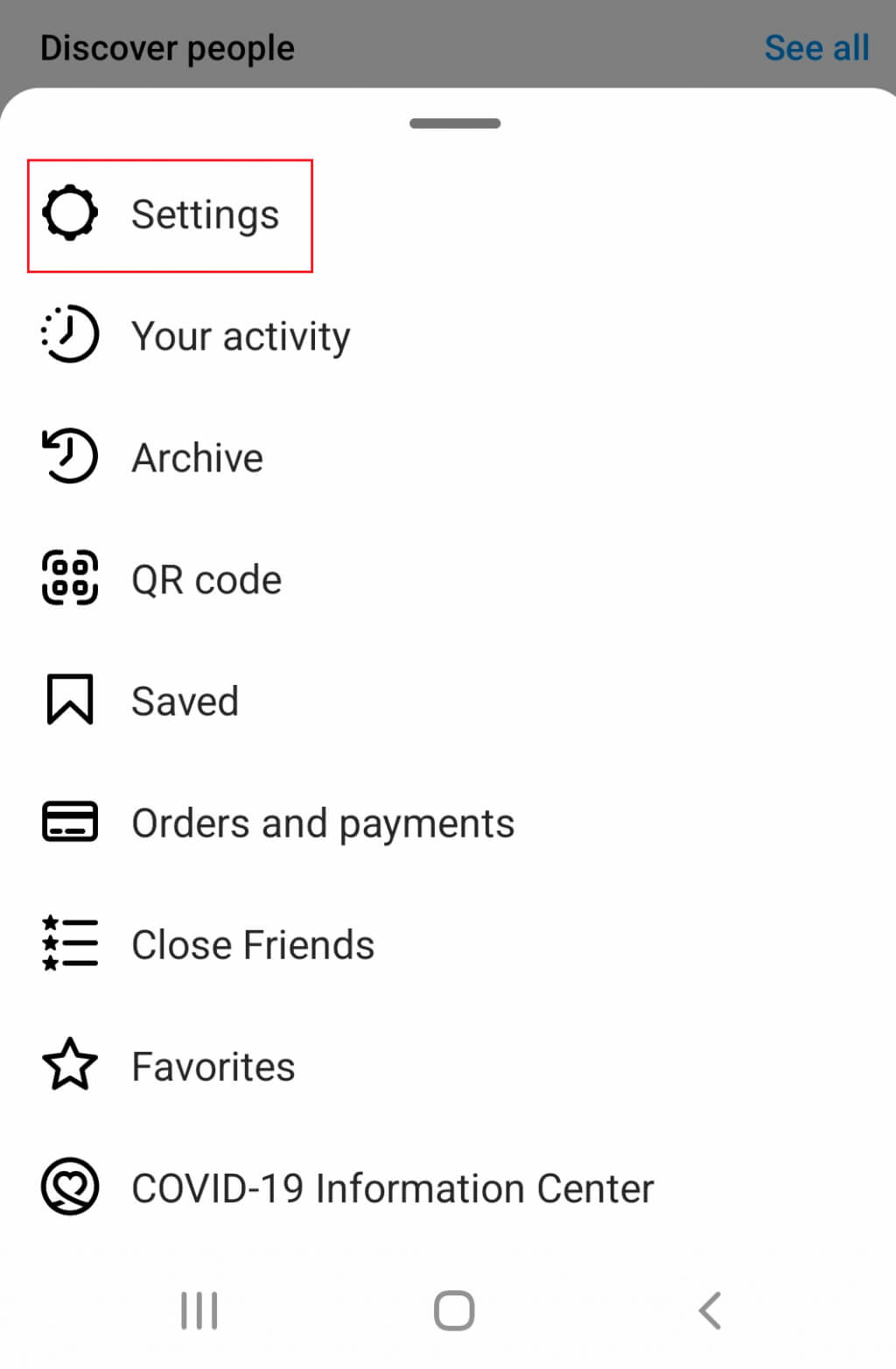 1. Ανοίξτε το Instagram και μεταβείτε στο προφίλ σας. ΕισάγωΡυθμίσειςμέσω του μενού χάμπουργκερ.