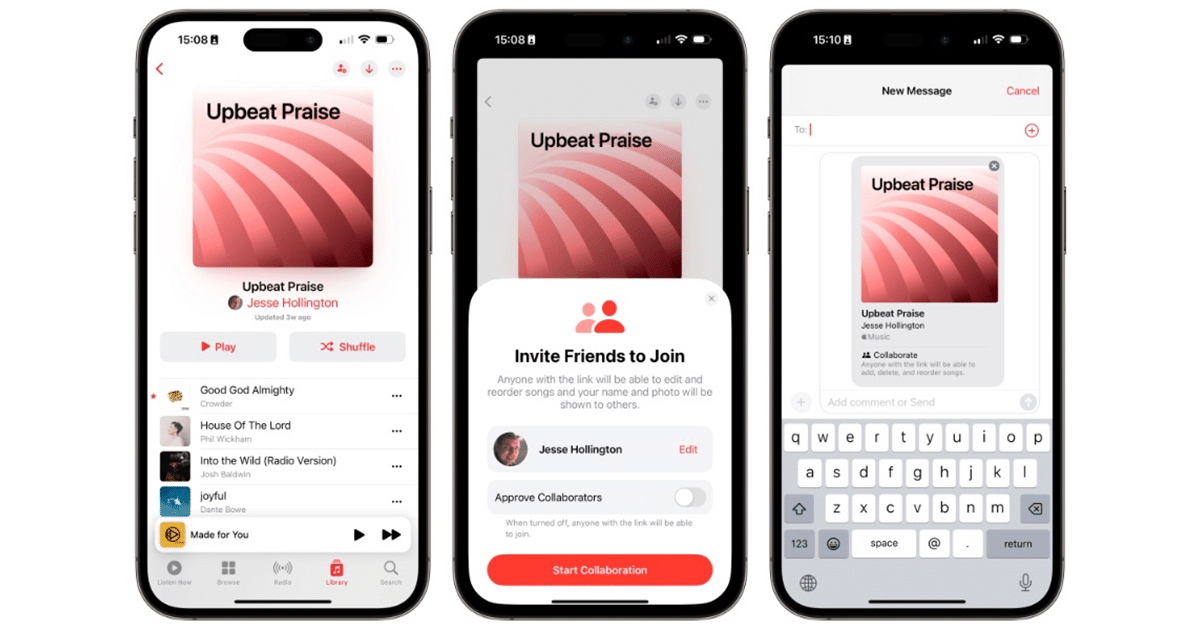 Η δημιουργία μιας λίστας αναπαραγωγής συνεργασίας είναι εύκολη. Απλά ανοίξτε την εφαρμογή Apple Music, δημιουργήστε μια νέα λίστα αναπαραγωγής και πατήστε το εικονίδιο μικρού προσώπου. Από εκεί, μπορείτε να προσκαλέσετε τους φίλους σας μέσω μηνυμάτων, airdrop ή ενός κοινού συνδέσμου. Μόλις συμμετάσχουν, θα έχουν πλήρη έλεγχο για να προσθέσουν, να αφαιρέσουν και ακόμη και να αναδιατάξουν τραγούδια, καθιστώντας την μια πραγματικά συνεργατική προσπάθεια.