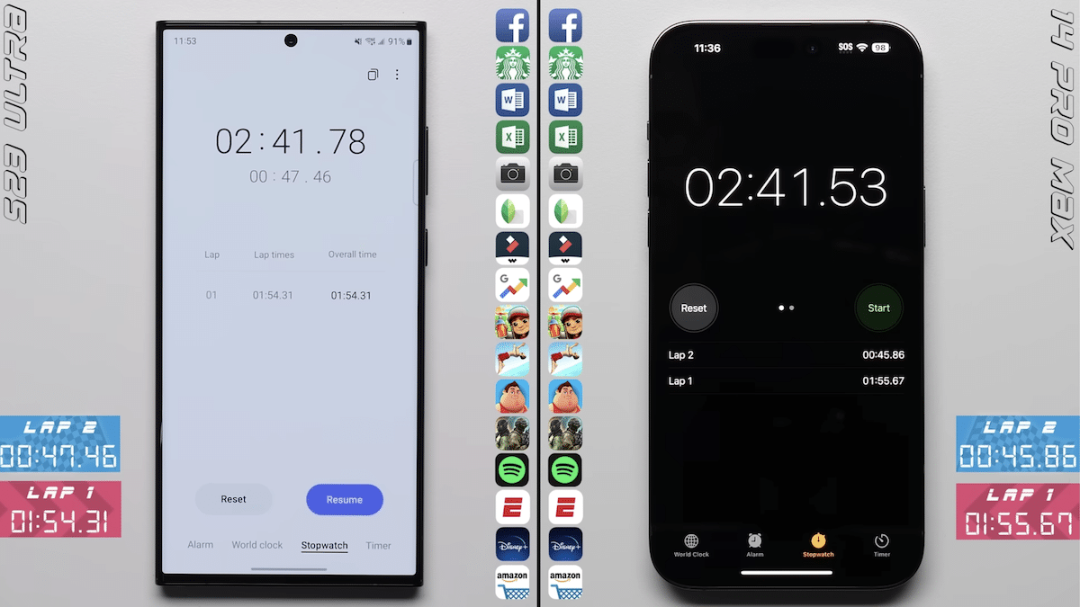 Για τη δοκιμή @PhoneBuff υπολόγισε τον χρόνο φόρτωσης 16 εφαρμογών και στα δύο τηλέφωνα ταυτόχρονα. Και για πρώτη φορά, ένα Android smartphone ταιριάζει με το iPhone 14 Pro Max Speed, αν δεν το ξεπεράσει.