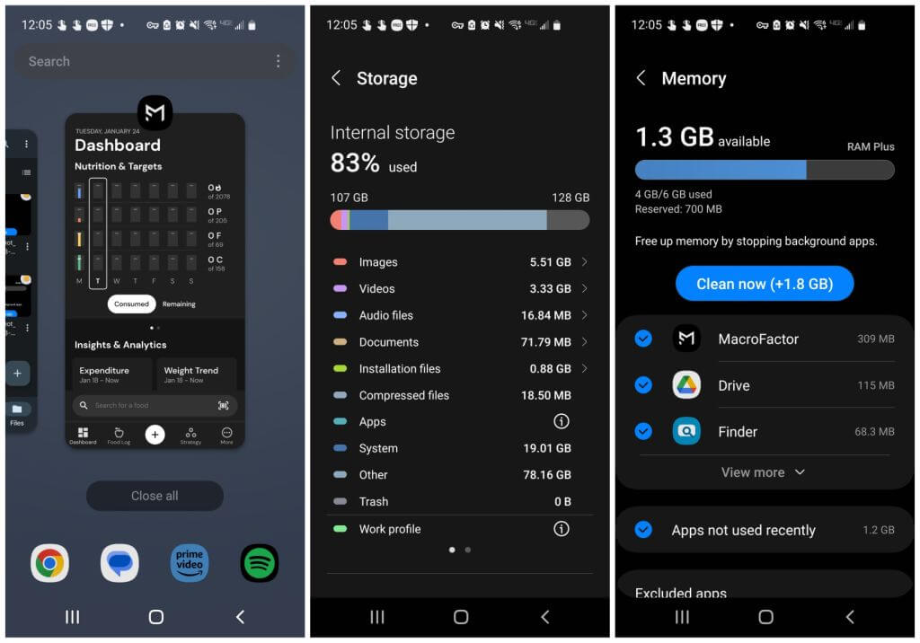 Ο ευκολότερος τρόπος για να το κάνετε αυτό σε ένα τηλέφωνο Android είναι με το χτύπημαΦροντίδα μπαταρίας και συσκευώνστις ρυθμίσεις. Στη συνέχεια, πατήστεΑποθήκευσηΓια να δείτε και να κλείσετε ποιοι τύποι αρχείων χρησιμοποιούν το μεγαλύτερο χώρο. Τέλος, πατήστεΜνήμηΓια να δείτε ποιες εφαρμογές χρησιμοποιούν τη μνήμη σας και πατήστεΚαθαρίστε τώραγια να τα κλείσουμε όλα.