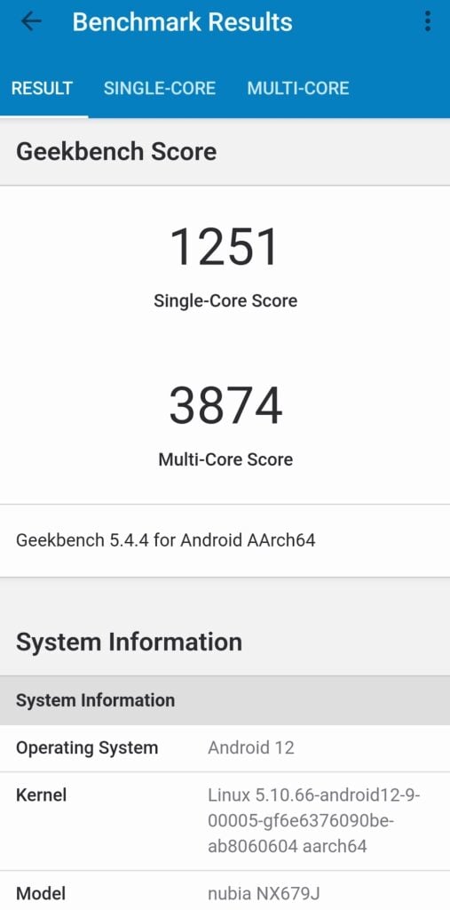 Αρκεί να δούμε τους αριθμούς αναφοράς για να κατανοήσουμε πόσο γρήγορα και ισχυρό είναι το Redmagic 7. Βάζουμε το RedMagic 7 μέσω της εφαρμογής δοκιμών Geekbench 5 για να ανακαλύψουμε τα αποτελέσματα αναφοράς και να δούμε πώς συγκρίνεται με άλλα κορυφαία smartphones.