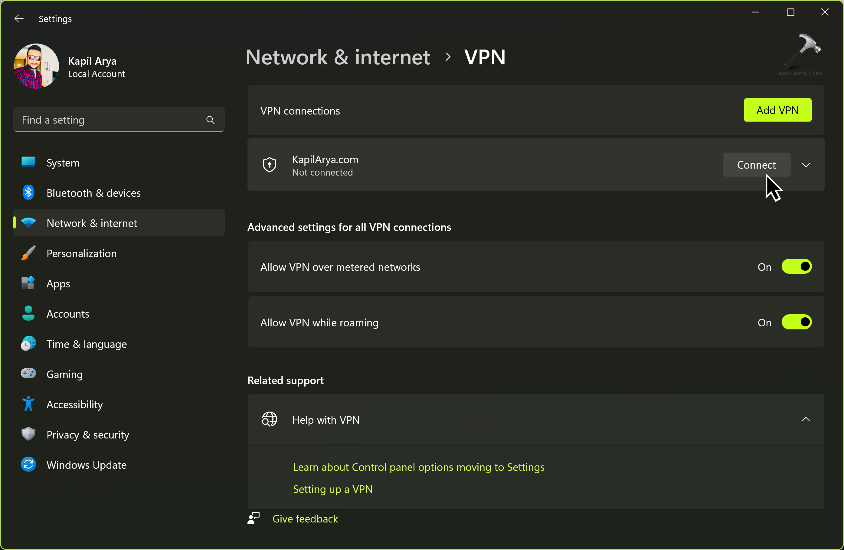 Βήματα για τη σύνδεση του διακομιστή VPN στα Windows 11