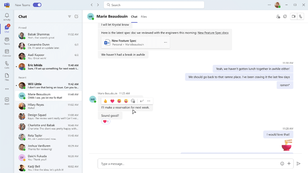 - Βελτιώσεις στη συνομιλία και τη συνεργασία: Αυτές οι βελτιώσεις διευκολύνουν τη συνεργασία με άλλους σε ομάδες, συμπεριλαμβανομένης της δυνατότητας @mention ατόμων σε συνομιλίες και να δουν ποιος είναι online.