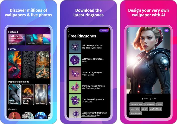 Η πύλη υιοθετεί μια απλή παιδαγωγική χρήση. Μπορείτε να επιλέξετε ή να δημιουργήσετε ταπετσαρίες και στη συνέχεια να τις αποθηκεύσετε για εύκολη εφαρμογή στην οθόνη. Επιπλέον, η εφαρμογή διαθέτει διαφορετικά εικονικά πληκτρολόγια, θέματα κινούμενων σχεδίων φόρτισης και ταπετσαρίες βάθους για το iPhone. Η συλλογή είναι τεράστια και σίγουρα θα ταιριάζει στις προτιμήσεις σας.