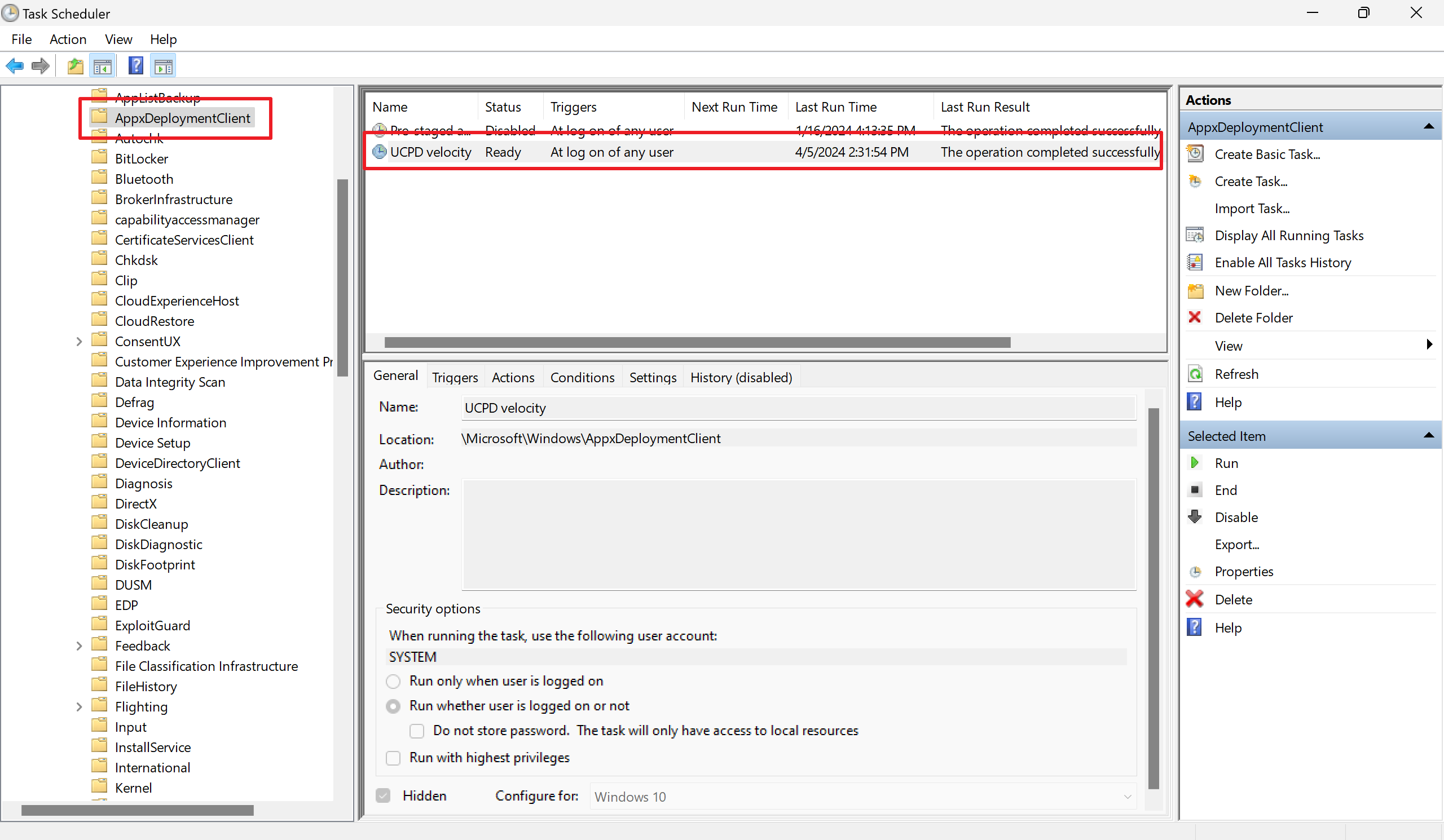 - Χρησιμοποιήστε την πλαϊνή γραμμή για να μεταβείτε στη βιβλιοθήκη προγραμματιστή εργασιών> Microsoft> Windows> AppXDeploymentClient.
