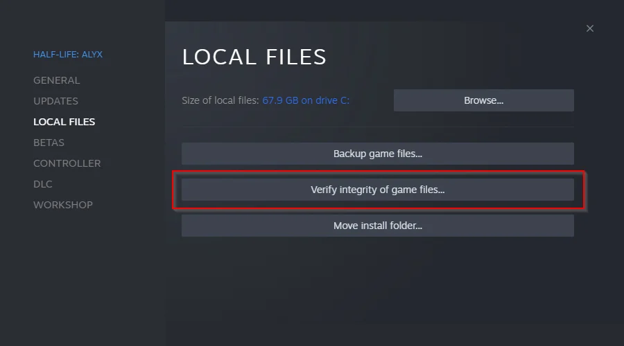 - Μεταβείτε στα τοπικά αρχεία και κάντε κλικ στοΕπαληθεύστε την ακεραιότητα τουπαιχνίδιαρχεία.