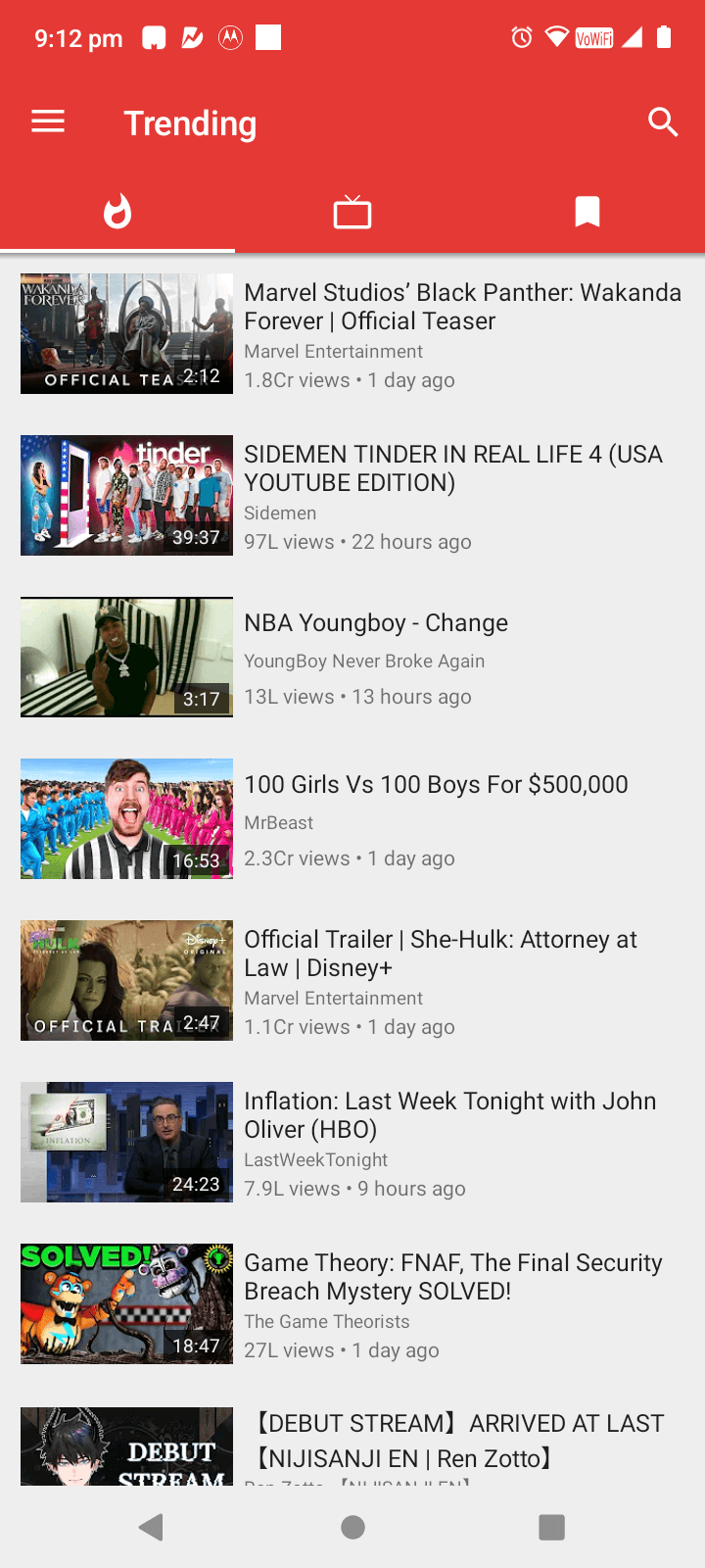 - Υπάρχουν τρεις κύριες καρτέλες στο Newpipe. Όταν ανοίγετε την εφαρμογή για πρώτη φορά, θα σας υποδεχτεί η σελίδα Trending. Αυτή η σελίδα περιλαμβάνει προτάσεις που επηρεάζονται από το ιστορικό ρολογιών σας, οπότε δώστε λίγο χρόνο για να μάθετε τα πρότυπά σας.