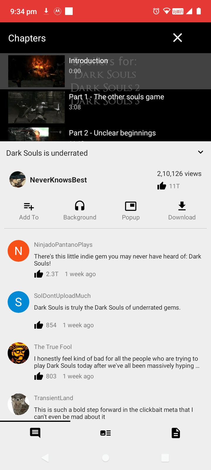 - Ακριβώς δίπλα στην επιλογή ποιότητας βίντεο είναι το εικονίδιο για τα κεφάλαια. Πατώντας το θα μειώσει μια λίστα με κεφάλαια που δημιουργήθηκαν για το βίντεο, επιτρέποντάς σας να παραλείψετε μπροστά στο σχετικό τμήμα.