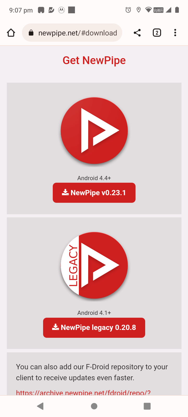 - Εδώ μπορείτε να επιλέξετε μεταξύ της τελευταίας έκδοσης και της κληρονομιάς για παλιές συσκευές Android. Για τους περισσότερους χρήστες, η νέα έκδοση του Newpipe θα λειτουργήσει καλά.