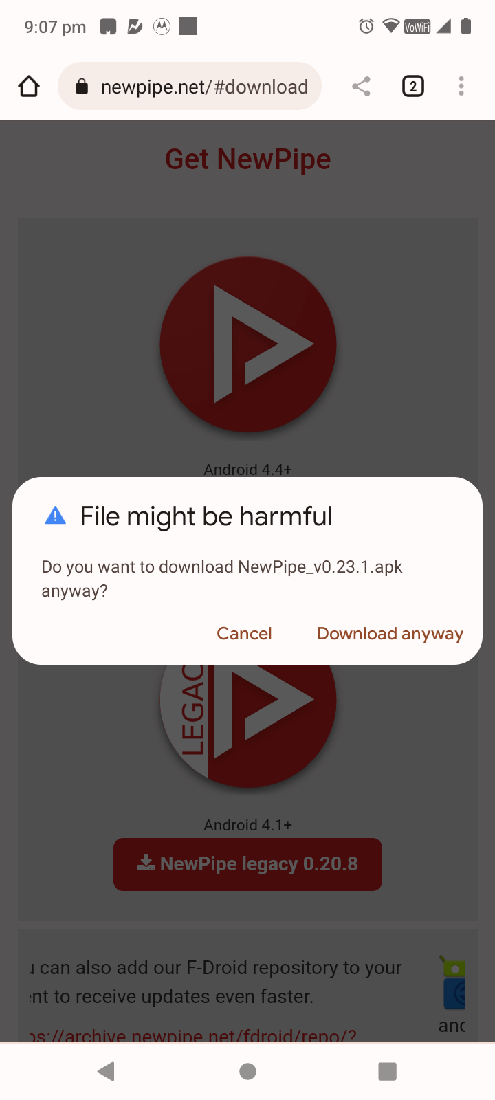 Καθώς η εφαρμογή NewPipe δεν είναι διαθέσιμη στο Google Play Store, πρέπει να την εγκαταστήσετε χρησιμοποιώντας μια διαφορετική μέθοδο. Εάν χρησιμοποιείτε το F-Droid (ένα εναλλακτικό κατάστημα εφαρμογών για κινητά), μπορείτε να το κατεβάσετε από εκεί. Διαφορετικά, θα πρέπει να εγκαταστήσετε απευθείας χρησιμοποιώντας το Newpipe APK.