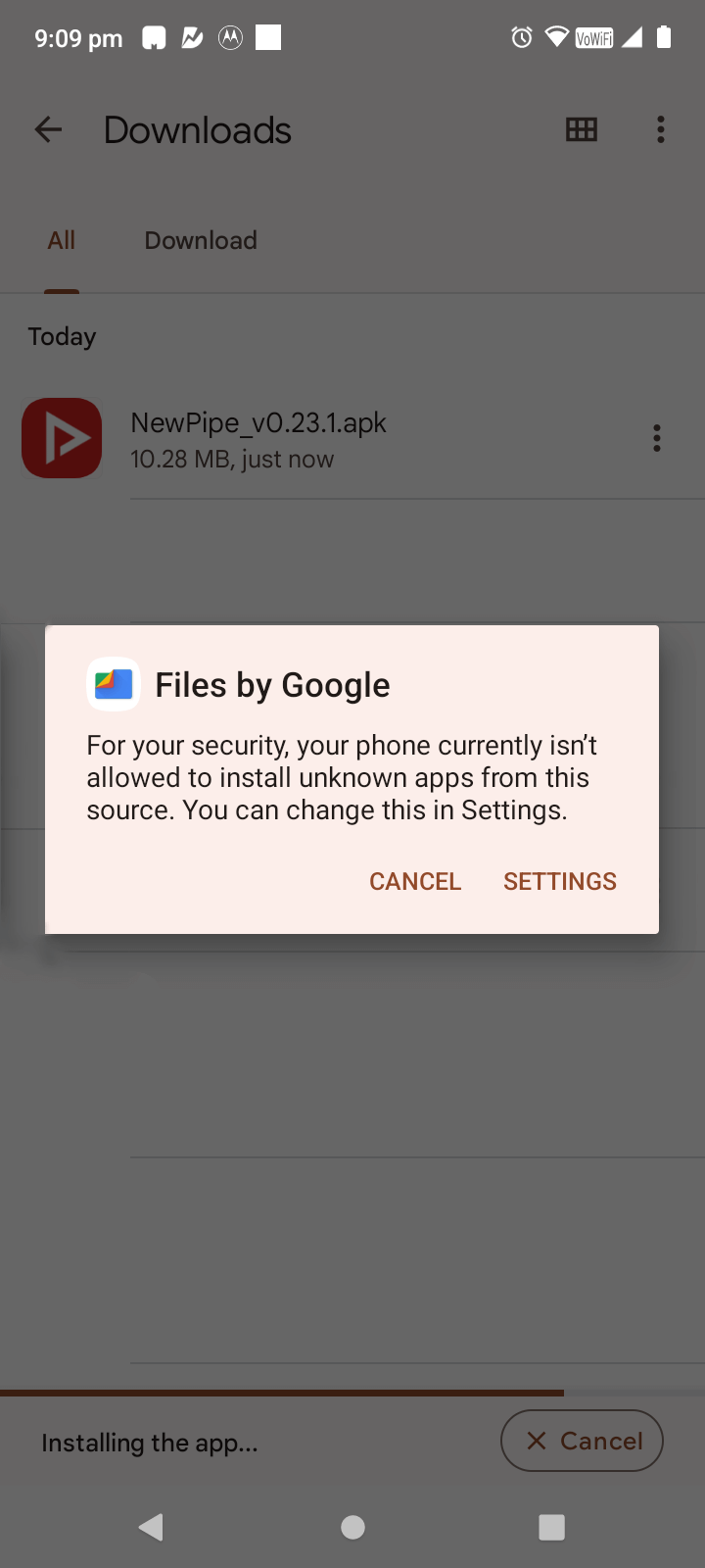 - Για να εγκαταστήσετε πραγματικά το Newpipe από αυτό το αρχείο APK, ανοίξτε τοΑρχείαΕφαρμογή στο τηλέφωνό σας (ή οποιαδήποτε άλλη εφαρμογή διαχείρισης αρχείων που θέλετε να χρησιμοποιήσετε).
