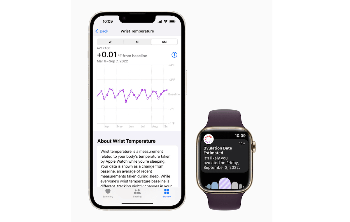 - Apple Watch Series 8φέρνει νέα δυνατότητα ανίχνευσης θερμοκρασίας καρπού για τις γυναίκες. Ενσωματωμένο με την παρακολούθηση του κύκλου, ο νέος αισθητήρας θερμοκρασίας στέλνει εκτιμήσεις ωορρηξίας για τις γυναίκες να σχεδιάσουν τη γονιμότητα ή να παρακολουθούν καλύτερα τους κύκλους εμμηνορροϊκής τους.
