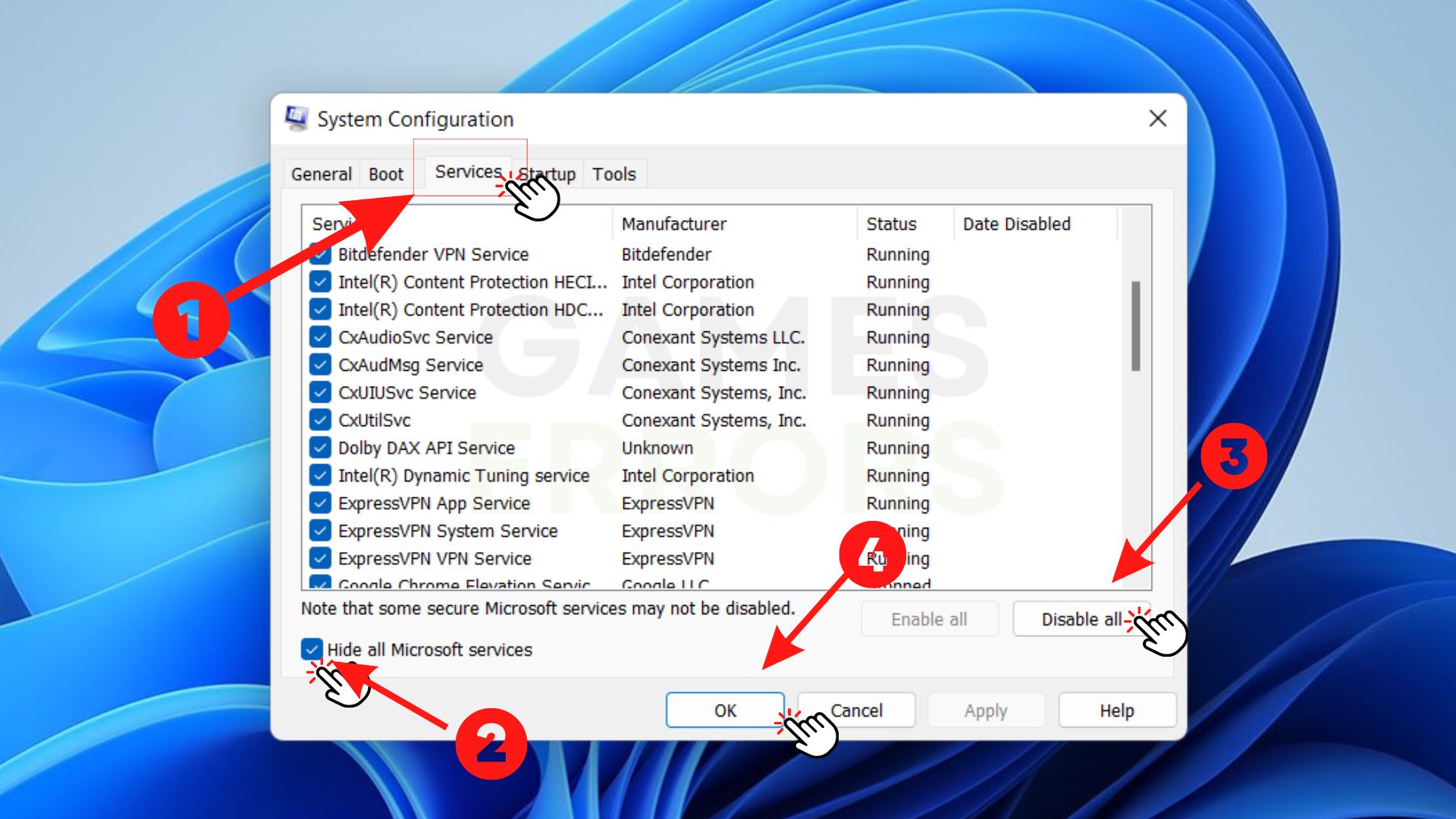 Με την εκτέλεση μιας καθαρής εκκίνησης, ξεκινάτε τα Windows με τις ελάχιστες εφαρμογές και τους οδηγούς εκκίνησης, οι οποίες μπορούν να σας βοηθήσουν να υπολογίσετε εάν ένα πρόγραμμα εκκίνησης ή μια υπηρεσία τρίτου μέρους είναι να φταίει για τη συντριβή One Piece Odyssey.