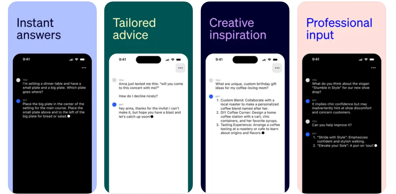 Επιπλέον, οι δυνατότητες αναγνώρισης φωνής επιτρέπουν στους χρήστες να μιλούν τα ερωτήματά τους, αν και οι απαντήσεις παραμένουν σε γραπτή μορφή. Η εφαρμογή προσφέρει επίσης απρόσκοπτη συγχρονισμό συνομιλιών που βασίζονται σε κείμενο σε πολλές συσκευές, επιτρέποντας μια συνεπή εμπειρία χρήστη.