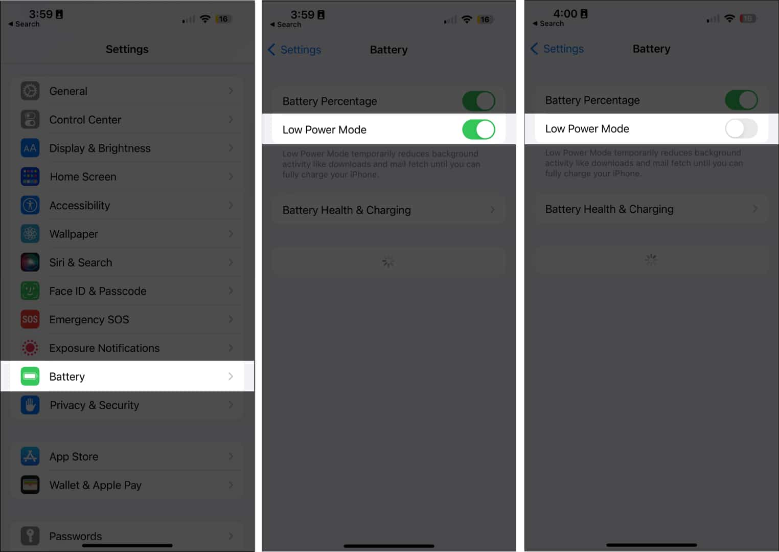 ΠηγαίνωΡυθμίσεις→Μπαταρία→ ΕναλλαγήΛειτουργία χαμηλής ισχύοςμακριά από.