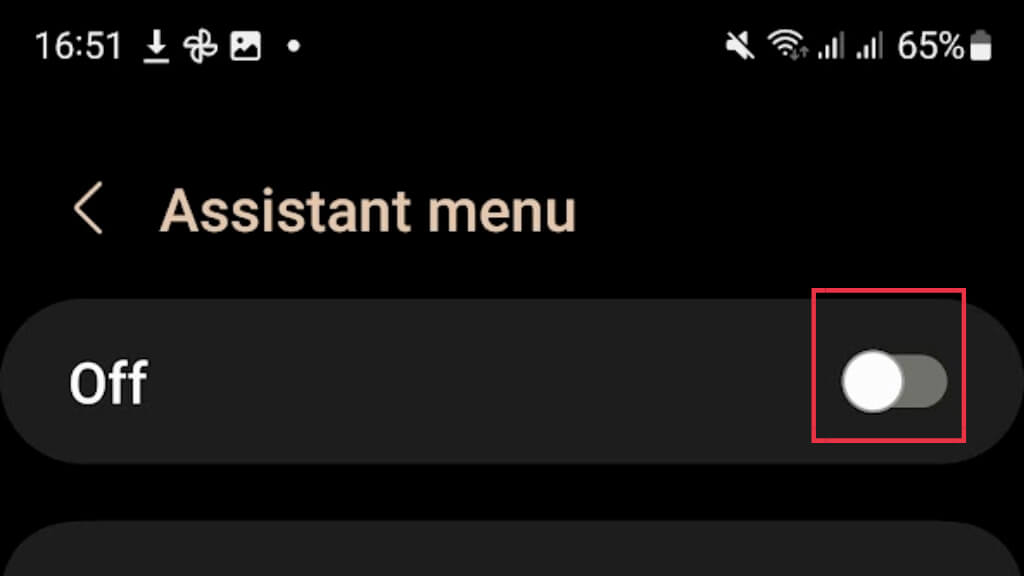 - Εναλλαγή του διακόπτη για να ενεργοποιήσετε το μενού Βοηθού.