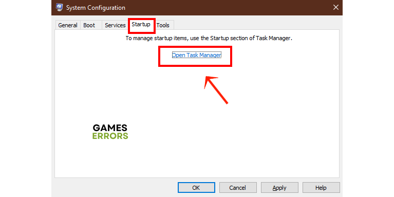 - ΚλικΕκκίνησηκαρτέλα και κάντε κλικΑνοίξτε τον διαχειριστή εργασιών.