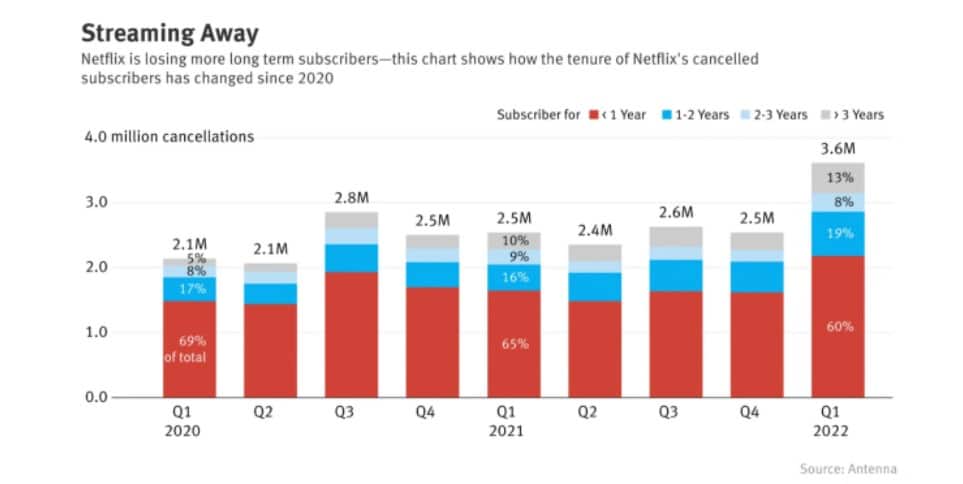 Αν και η Netflix χάνει τους συνδρομητές, η αγορά συνεχούς ροής συνεχίζει να κερδίζει συνδρομητές και παραμένει άθικτη. Τα στοιχεία υποδηλώνουν ότι ο γίγαντας συνεχούς συνεχούς χάνει τους συνδρομητές λόγω της αύξησης του κόστους των συνδρομών του, που φέρνει το βασικό του σχέδιο σε $ 9.99/ μήνα (από 8.99 δολάρια), το τυποποιημένο σχέδιο του σε $ 15.49/ μήνα (από $ 13.99) και το premium του σε 19,99/ μήνα (από 17,99 δολάρια).