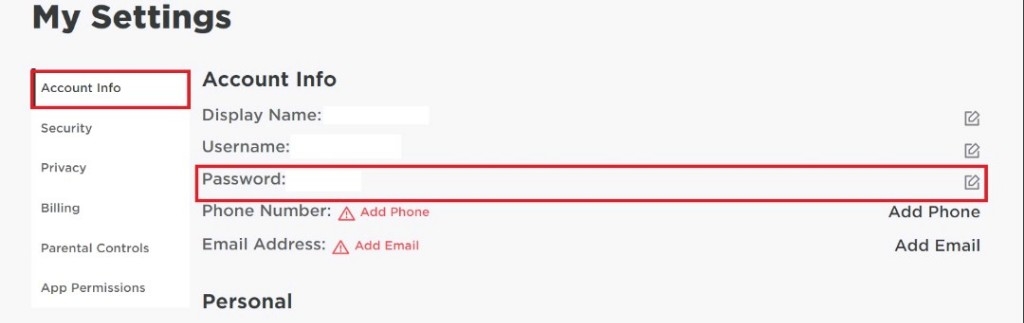 - Αλλάξτε τον κωδικό πρόσβασης Roblox