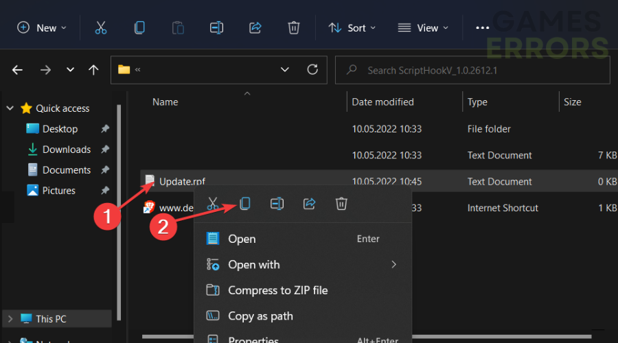 - Κάντε δεξί κλικ στοUpdate.rpfαρχείο και επιλέξτε το εικονίδιο αντιγραφής από το αναπτυσσόμενο μενού.