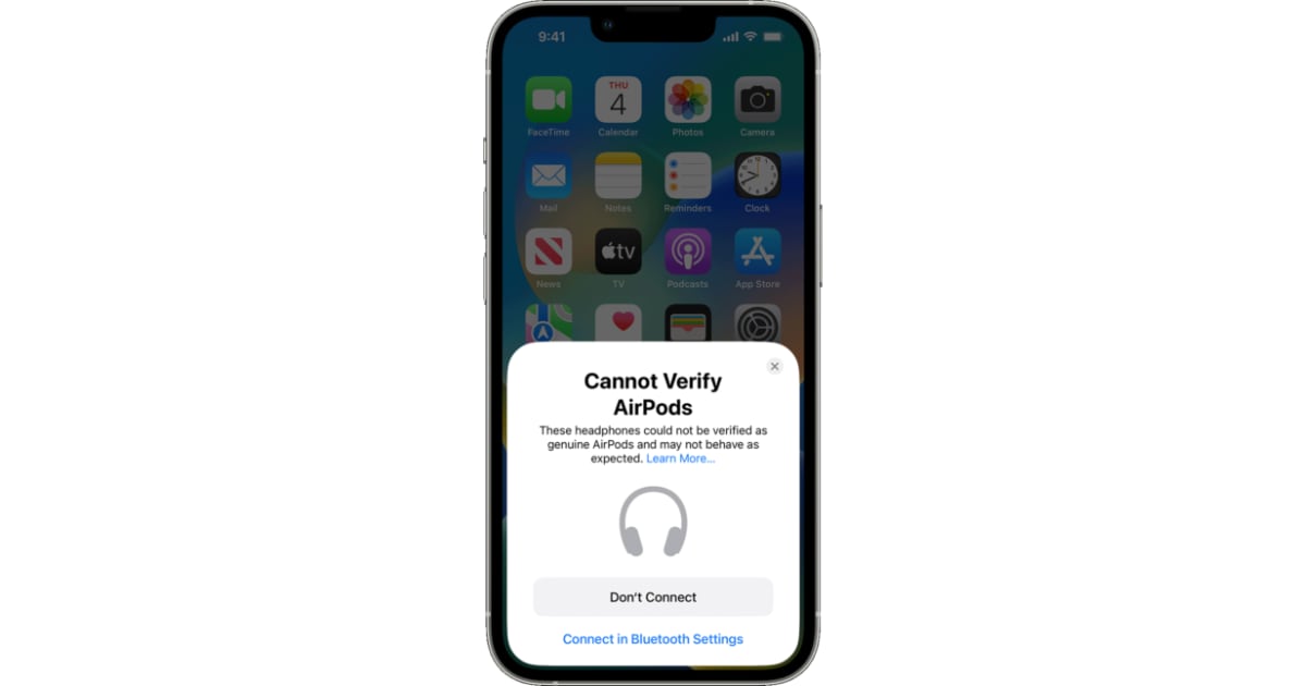 Τα πλαστά airpods μπορούν ακόμα να συνδεθούν με συσκευές της Apple, αλλά θα εμφανιστείτε μια προειδοποίηση