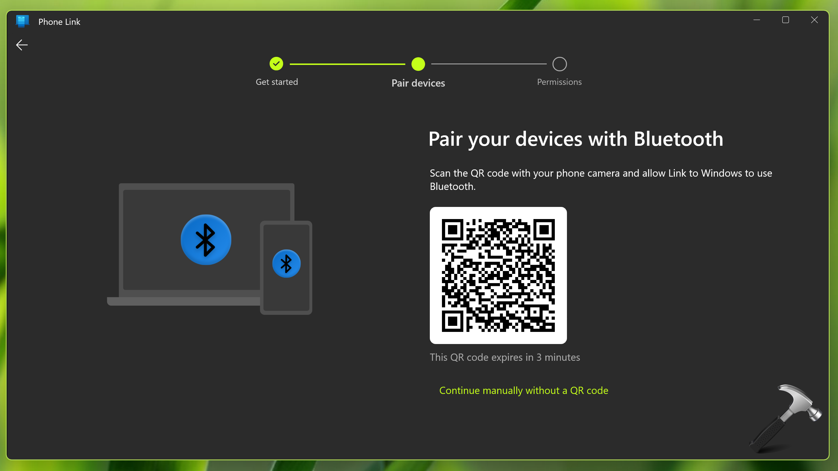 2. Στην καρτέλα Συσκευές ζευγών, πρέπει να σαρώσετε τον κωδικό QR που εμφανίζεται εκεί. Ή μπορείτε επίσης να κάνετε κλικ στο κουμπί Συνέχεια με το χέρι χωρίς κωδικό QR. Βασικά, πρέπει να κατεβάσετε την εφαρμογή LinkTowIndows στην εφαρμογή iPhone σας σε αυτό το στάδιο.