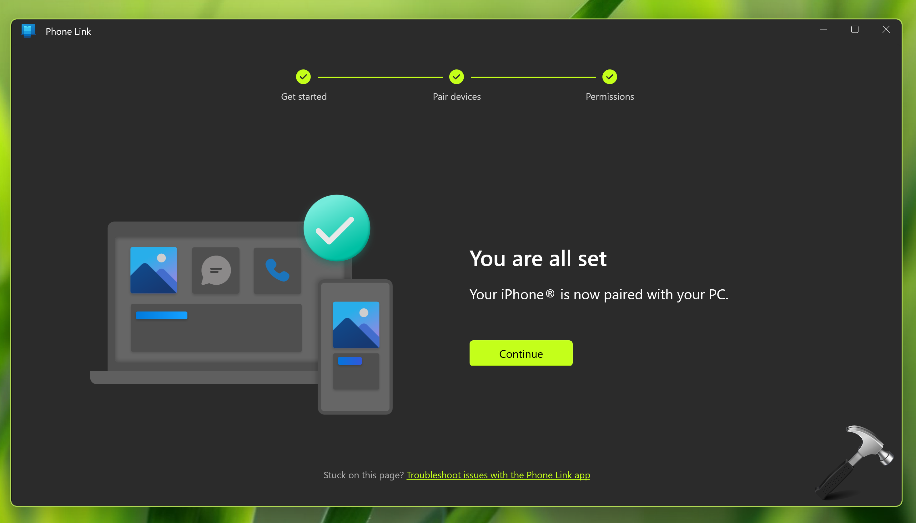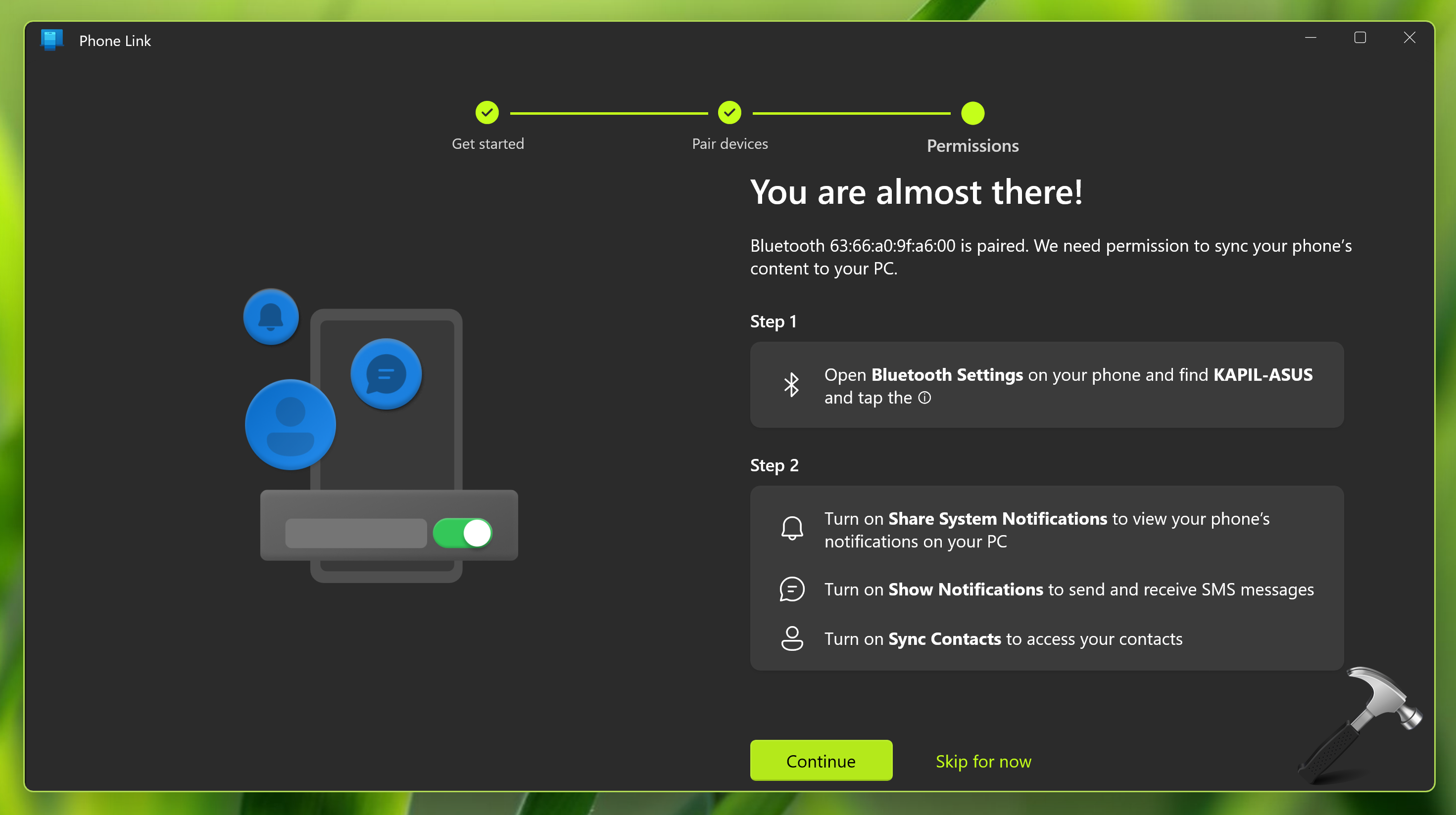 4 Σε λίγα λεπτά, και οι δύο συσκευές πρέπει να συνδυάζονται. Θα δείτε ότι είστε σχεδόν εκεί! οθόνη. Ακολουθήστε το βήμα 1 και 2 σε αυτήν την οθόνη και, στη συνέχεια, κάντε κλικ στο κουμπί Συνέχεια.