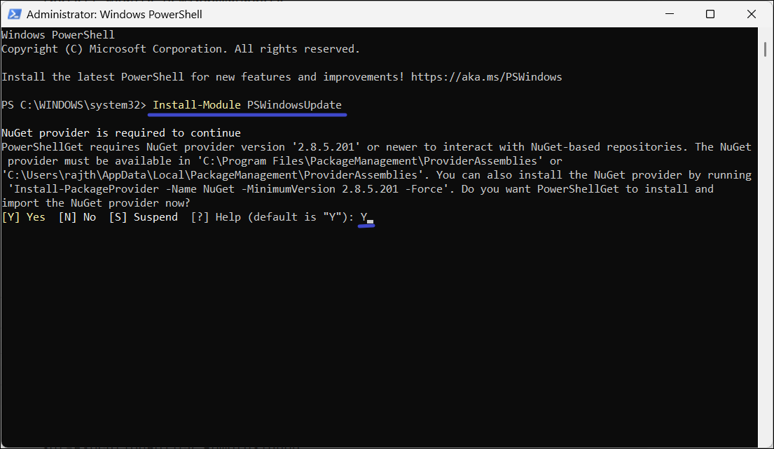 2. Εάν η μονάδα PswindowSupdate δεν έχει εγκατασταθεί πριν, εκτελέστε την παρακάτω εντολή: