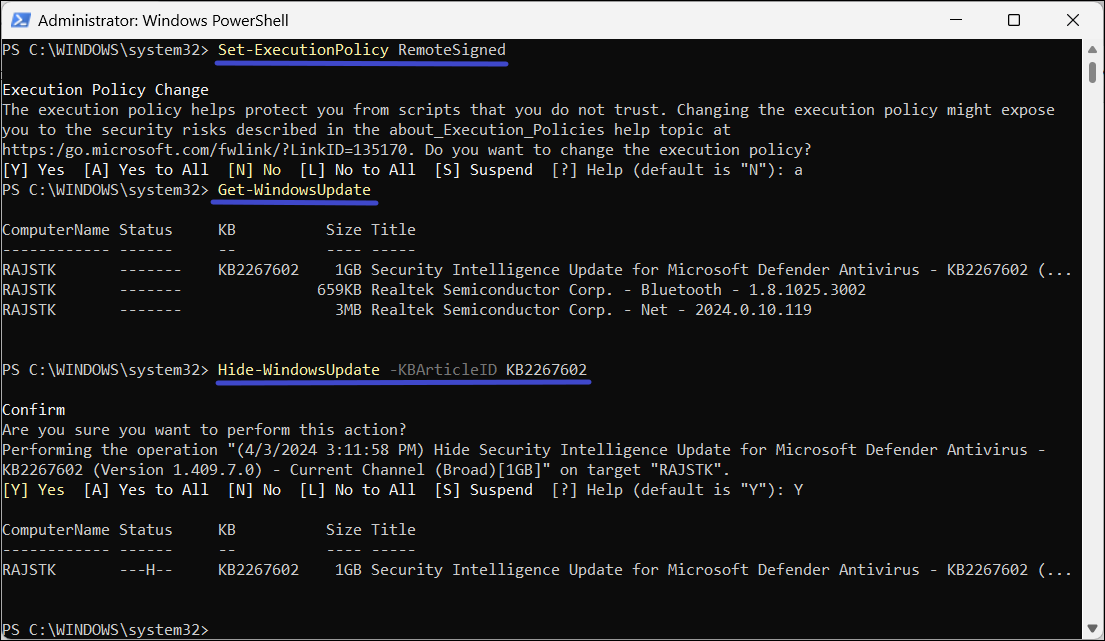 Απόκρυψη ενημερώσεων χρησιμοποιώντας το PowerShell