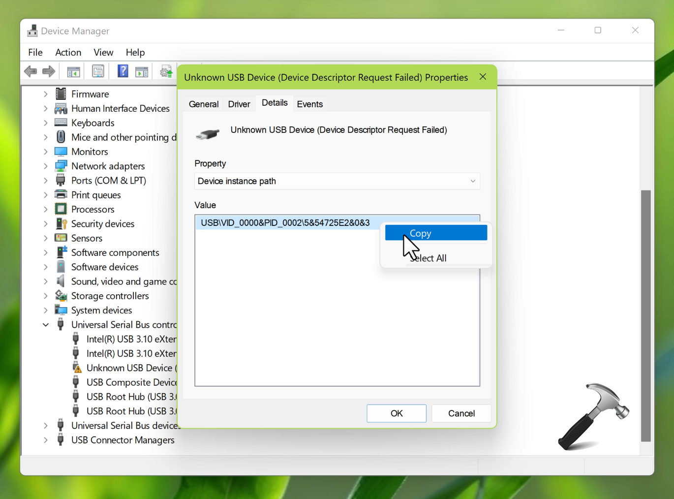 Δείτε επίσης:Διορθώστε: Άγνωστη συσκευή USB (αποτυχημένη απαρίθμηση συσκευής) στα Windows 11