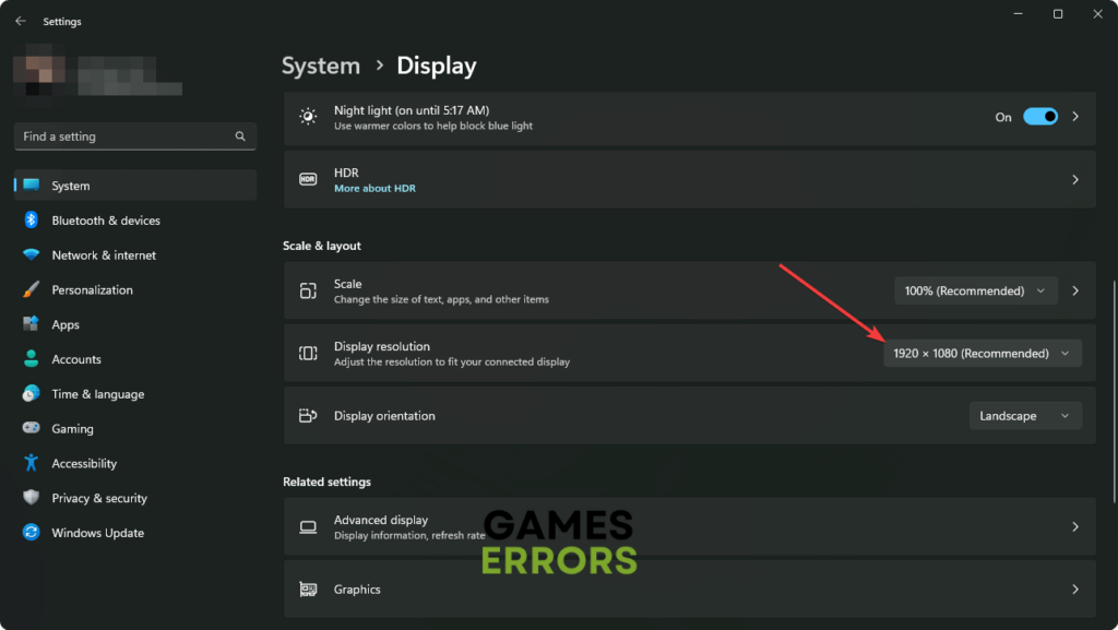 1. Τώρα κάντε κλικ στο αναπτυσσόμενο μενού και επιλέξτε υψηλότερη ή χαμηλότερη ανάλυση που ταιριάζει στην οθόνη σας.