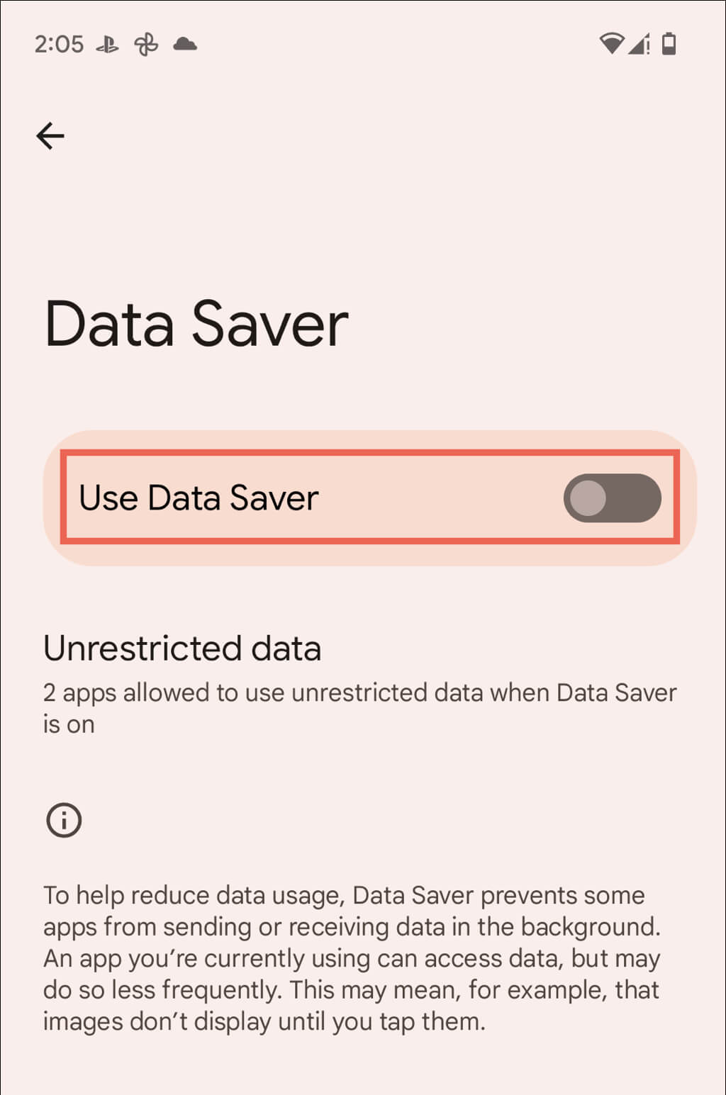 - Απενεργοποιήστε το διακόπτη δίπλα στοΧρησιμοποιήστε την εξοικονόμηση δεδομένων.