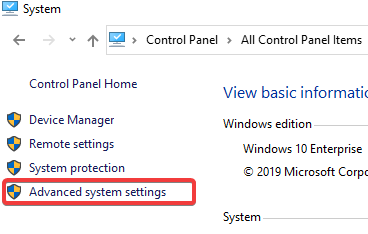 2. Κάντε κλικ στις προηγμένες ρυθμίσεις συστήματος στον αριστερό πίνακα.