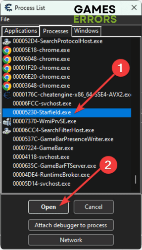 - Επιλέξτε τοStarfield.exeδιαδικασία.