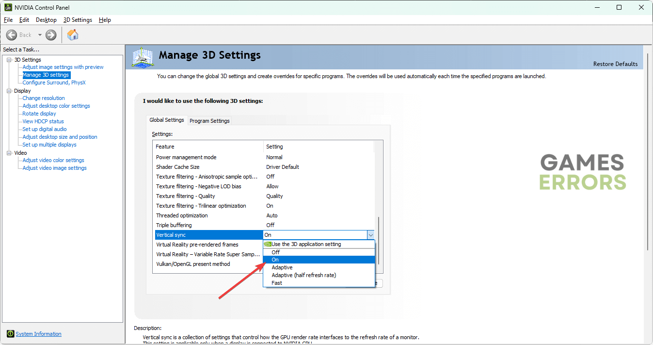 - Βρίσκω τοΚατακόρυφος συγχρονισμόςεπιλογή και, στη συνέχεια, κάντε κλικ στο κουμπίΕπί.