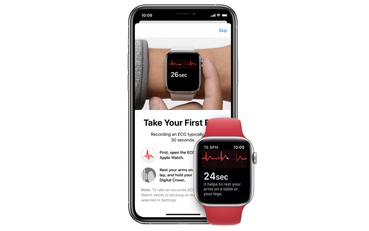 Τα μοντέλα Apple Watch Series 6 και αργότερα είναι εξοπλισμένα με αισθητήρα ECG για τους χρήστες να παρακολουθούν τον καρδιακό ρυθμό τους σε οποιοδήποτε μέρος και ανά πάσα στιγμή μέσω της εφαρμογής ECG. Η εφαρμογή ανιχνεύει επίσης αυτόματα μη διαγνωσμένη κολπική μαρμαρυγή (AFIB), μια μορφή ακανόνιστου ρυθμού.