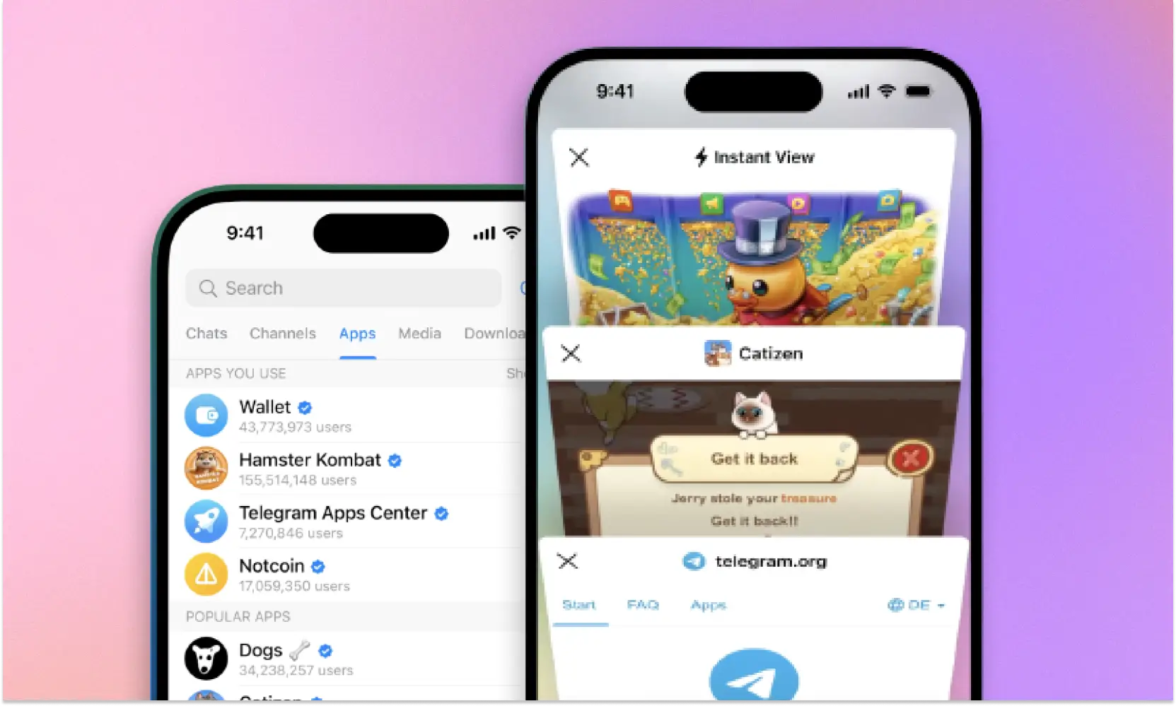 Η καρτέλα "Εφαρμογές" στην Search Telegram είναι ένα κατάστημα εφαρμογών που έχει σχεδιαστεί για να βοηθήσει τους χρήστες να βρουν δημοφιλή και προηγουμένως χρησιμοποιούμενα παιχνίδια και υπηρεσίες. Υπάρχουν περισσότερα: Οι σελίδες προεπισκόπησης εφαρμογών υποστηρίζουν τώρα στιγμιότυπα οθόνης και demos βίντεο. Οι προγραμματιστές εφαρμογών μπορούν τώρα να περιλαμβάνουν υλικά μάρκετινγκ, μηνύματα και άλλα στοιχεία εφαρμογών.