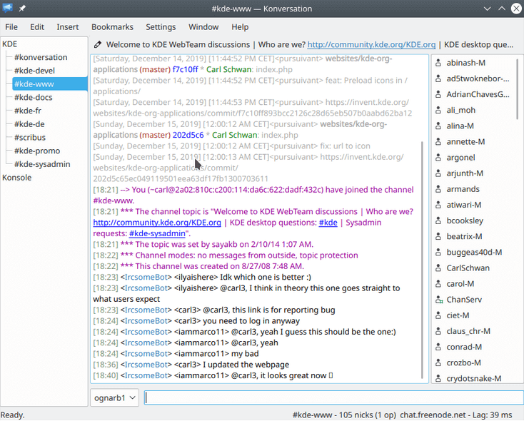 Το Konversation είναι η καλύτερη επιλογή για άτομα που επικεντρώνονται στη βελτίωση της παραγωγικότητας. Αρκετά χαρακτηριστικά έθεσαν αυτόν τον πελάτη IRC για το Linux εκτός από τους άλλους, συμπεριλαμβανομένης της οθόνης στην οθόνη και των εργαλείων γρήγορης κουμπιών.