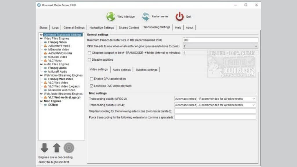 Universal Media Serverυπόσχεται λειτουργικότητα cross-platform και την παραδίδει σε φτυάρια. Λειτουργεί με τα πάντα, από κονσόλες παιχνιδιών έως έξυπνες τηλεοράσεις, προσφέροντας μια καθολική εμπειρία. Αυτός ο διακομιστής πολυμέσων είναι μια λύση plug-and-play που απαιτεί ελάχιστη ρύθμιση. Εγκαταστήστε το λογισμικό και είστε έτοιμοι να μεταδώσετε σε πολλές συσκευές.