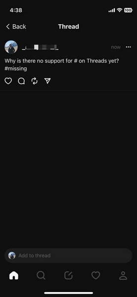 Στα θέματα, η υποστήριξη για hashtags λείπει εντελώς από τη σύνταξη αυτού του άρθρου. Όπως συμβαίνει σήμερα, αν και οι χρήστες μπορούν να προσθέσουν λέξεις με ετικέτα με ετικέτα στις θέσεις τους,Θα εμφανιστούν ως απλό κείμενο σε νήματα. Κανένας χρήστης δεν θα είναι σε θέση να κάνει κλικ σε αυτά για να βρει άλλες παρόμοιες αναρτήσεις που μπορούν στο Twitter.