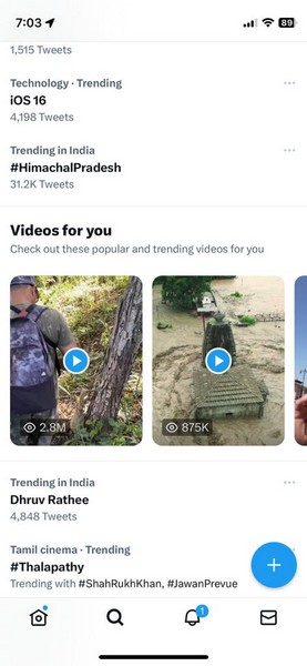 Στο Twitter,Οι χρήστες μπορούν εύκολα να μεταβούν στην καρτέλα εξερεύνηση(το εικονίδιο αναζήτησης) Από τη γραμμή πλοήγησης στο κάτω μέρος για να περιηγηθείτε μέσα από τα hashtags, τα άρθρα ειδήσεων, τις πρόσφατες δημοφιλείς θέσεις και τα βίντεο. Με αυτόν τον τρόπο, μπορούν να ανακαλύψουν νέο περιεχόμενο στην πλατφόρμα χωρίς να ψάχνουν για τίποτα.